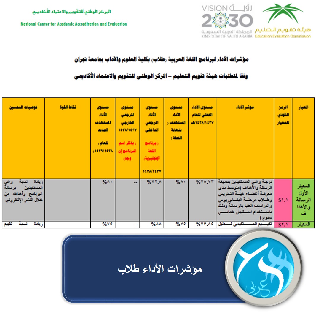 College Of Science And Arts Najran دليل مؤشرات الآداء