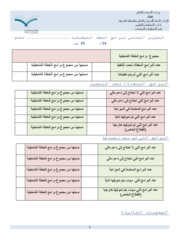 نموذج التقرير الختامي للخطة التشغيلية